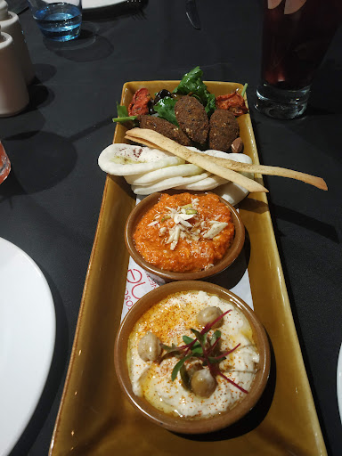 ๐ Mediterranean Hummus , Bean Falafel : Classic Mediterranean dish where in platter we had mini pita bread, bean falafel , breadsticks served along with Hummus & spicy Muhammmara & olives :)