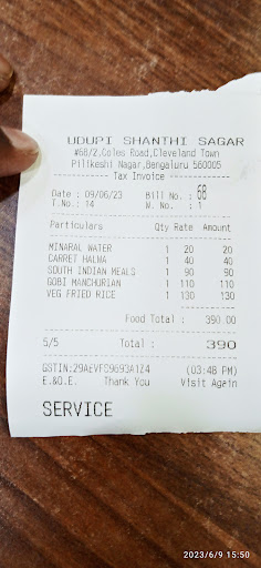 Read more"Shanti Sagar's Flavor and Cleanliness Lose Their Luster" Rating: 3/5 visited Udupi Shanti Sagar this afternoon-27-Aug-25, a popular spot for South Indian cuisine, and was disappointed to find that the taste and cleanliness have dipped over time. We ordered the South Indian thali, which is usually a staple of their menu.