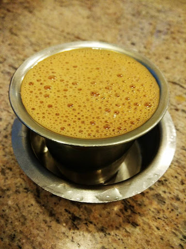 We weren't disappointed with the food at all. I tried out a vada dipped in sambar, which was really good. The vada was just right, crisp from the outside and soft from the inside, the Udupi-style sambar bursting with flavour. We got a plate of ghee-drizzled button idlis for my daughter, which were simply lovely too. We also tried out a masala dosa, which was the crisp, fried-in-oodles-of-oil that is common in several Bangalore eateries - none of us are big fans of that, so we didn't like this. The filter coffees that we all had a go at, post our snacks, was well done too, just the right amount of decoction and milk, just the perfect blend of sweet and bitter.