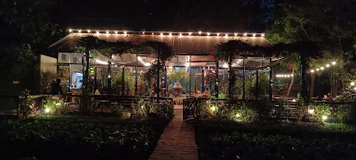 The backyard garden seemed quite interesting for clicking some pictures and on my insistence the staff allowed me a quick walk inside the area. I couldn't spot many vegetables distinctly, as the place was dim-lit. But the view of the bistro from the garden was nothing less than magical.