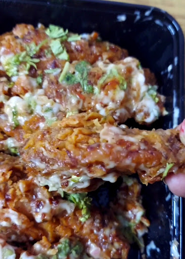 Taste: 6 chicken wings were packed nicely in a sturdy black box. Wings were crispy batter fried ones tossed in cheese and garlic mayo and chopped Coriander leaves. I would have loved some chopped fried garlic personally which they didn't add. Rest chicken wings were crispy and super soft inside, it felt tender, fresh and warm. I would try these in grilled version. Out of 6, last 2 wings had soaked little more oil to my liking. Rest I will try new things from this place for sure.