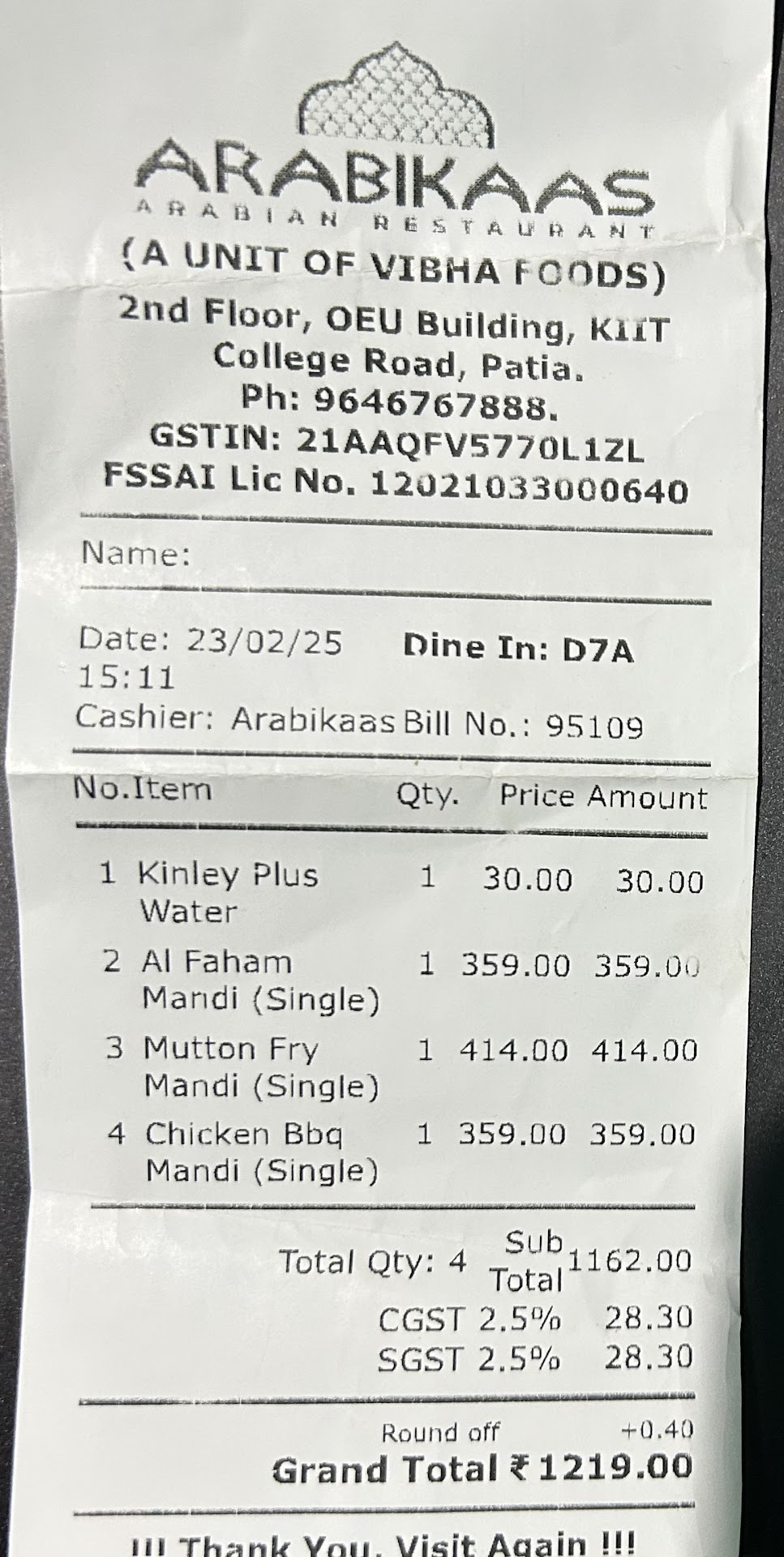 I have had great Mandi in Hyderabad at Mandi@36. And Arabikaas I would say is doing great. Overall we had a great time there. Everything was good. Service was good too. And it might seem a little bit pricey but the portion sizes justify it. And Mandis in Hyderabad are either similarly priced or more expensive. The bill for 2 of us was ₹1350. But we had 3 persons food. So more like 450-500 per person is a good estimate. So give this place a try....