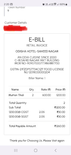 Read moreLocated at Shaheednagar, Bhubaneswar, I was taken by the cab driver to Odisha Hotel. It is a cozy restaurant with seating arrangement for approx 20 people on the ground floor. This hotel attracts the local crowd as well as visitors like me who wish to taste the authentic dishes of each state. I ordered rice, 'pancho byanjon' (billed as mix bhaja), khasi mangsho jhol, papad and raita. First, the Pancho byanjon' had saag, beans, bitter gourd, pointed gourd and aloo chokha. Each item tasted good. The mangsho r jhol contained 4 decent sized well cooked mutton pieces but the potato in it was half cooked. The taste was amazing. Had to take another serving of rice to be fully satiated. Paying Rs. 352 for the entire food is good enough and value for money. I had gone in to eat fish but I was told that the Rohu is from Andhra. Disappointed. Fresh prawns and crabs were available but decided to ignore due to extreme humid weather. The place is crowded too which basically means that the food is absolutely fresh. The stewards are pressurized to attend to the crowd but they are soft spoken and did not even turn up for tips. Oh, BTW the plates, glass is of brass which is old time. I genuinely liked the food and I wish Odisha Hotel team...