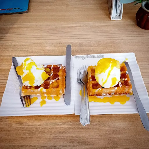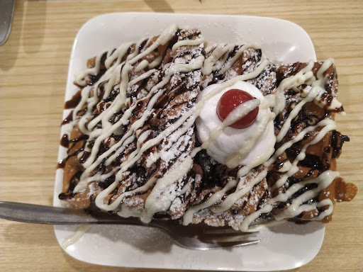 Read moreAfter entering the doors giving you the vibes of a small Cafe latte types with tables and chairs to settle you down and then enjoying the items at first marks the stunning entrance of the mango 🧇 where the waffles with icecream with the top of mango jellies not so sweet but giving a brief punchy flavour followed by shakes which were overloaded by creams, chocolates and icecreams making you to struggle for to finish at a go accompanied by a light hearted cold coffee and then arrived the blockbusters masalalicious Red Sauce spaghetti dipped in broccoli and other veggies served with two roasted garlic breads....so it's a heaven on...