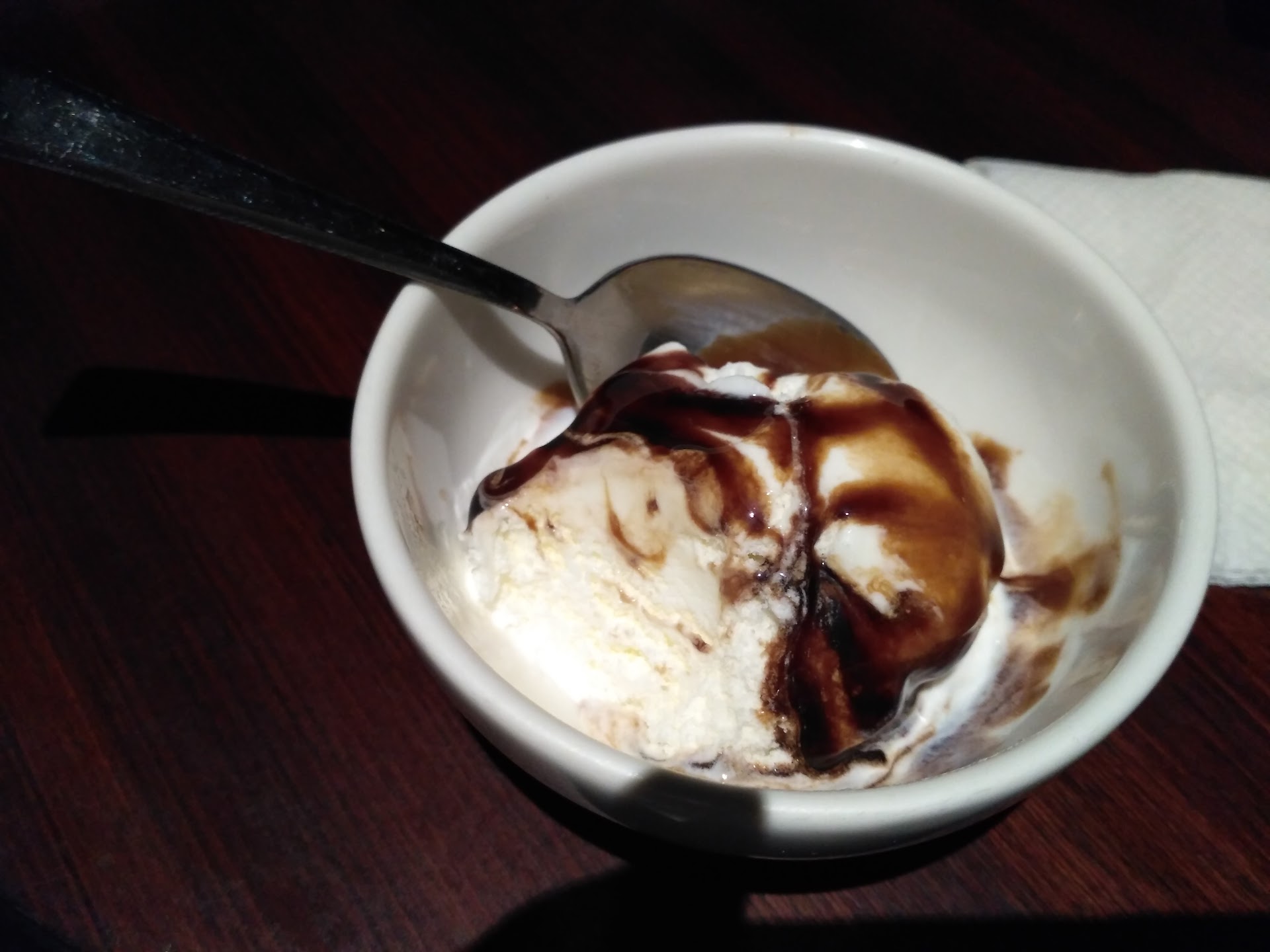First combo we had a chicken cheese lasagna with white wine and vanilla ice cream with chocolate sauce. The lasagna was well done. Blended perfectly with the beer and wine we had ! Presentation was awesome. The garlic breads served along side were just apt and crisp. Dessert portion was adequate and served cold.