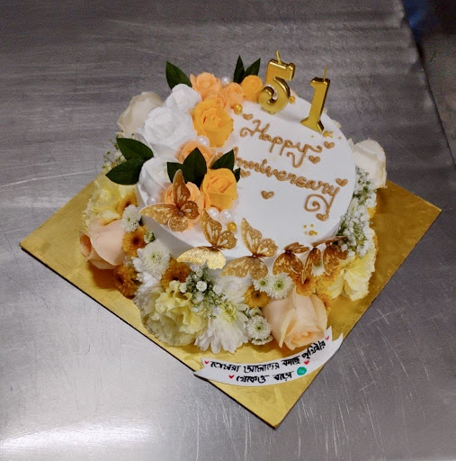 I am writing from my fatherâs account; this is his daughter, Mita. I placed an order for a cake to celebrate my parentsâ 51st anniversary. We are visiting Kolkata, our hometown, but live in the US. I looked online, saw their pictures and reviews, and reached out to them. Mr. Sujoy was very helpful in answering my questions promptly, and we went to their site in Salt Lake. They have a small cozy area, it is not a retail shop setup, but where the baking happens and where they take orders. Right as you walk in, you can see the bakers working away and itâs lovely to be able to see a behind the scenes of the cake preparations :) After meeting with the lady that took my order (my apologies, I canât remember her name), she was very patient, as I took elements from different cakes to combine into one cake for my parents (not easy for them to do). She brought in the main cake designer to help flesh out my overall vision for the cake, and the cake designer/baker is absolutely incredibly talented. She said she studied in Kolkata, but it is obvious she has a natural eye for aesthetics (what will look good). I didnât give her an exact picture she could copy, but gave her an overall idea of the vision I had for the cake. She took my vision and brought it to life in the cake, and in only a few days time. Although it was not a large cake-it was for a very small, intimate family gathering-they were very timely and professional. The cake turned out beautiful, not only to look at, but tasted great as well! My parents were very happy, and that was all I wanted. I highly recommend Boffocakes and would definitely go back to them in the future, especially for more complicated cakes as I saw what they can do with just a simple cake for a small gathering. I can only imagine what they could create with larger cakes for fancy gatherings! Price was also reasonable for a custom cake and for the quality and taste. Thank you all so much, for helping to make my parentsâ anniversary special :)...