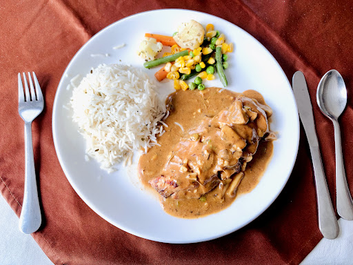 Stylish understated hotel dining room serving a menu of Indian, Continental and Chinese dishes.