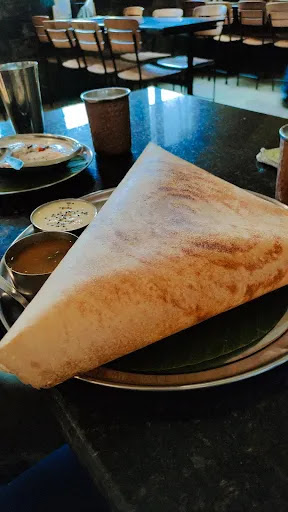 Food : very less variety. They have only dosas and uthappam. South Indian cousine vegetarian has lot more than just the two. Dosas are oily and batter has a bitter taste. The main thing about dosa is the right batter. The chutneys given are bland. The red chutney which we obtain paying an additional charge is a simple onion chutney. There is no Pesarattu, flavored rice's, appam, kozhambu, pickles of south India, Morappam, panniyarams, or anything other than dosa and uthappam.