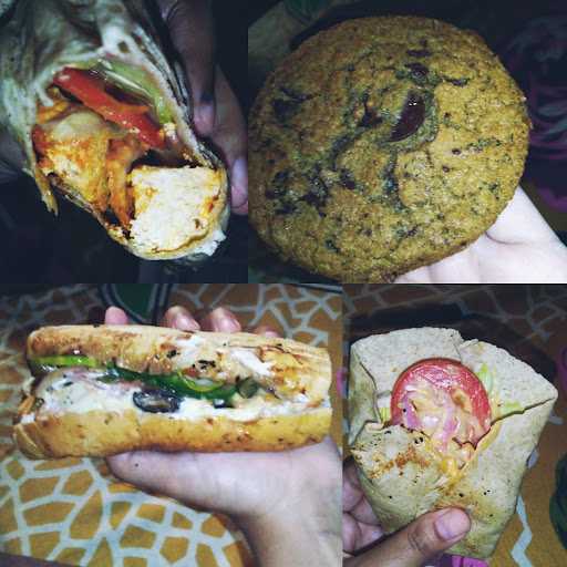 I ate the 12 INCH CHICKEN TANDOORI SANDWICH few days ago. CHICKEN TANDOORI SANDWICH : I chose the bread made of maida as the staff there suggested me . Then they put chicken tandoori pieces in it and cheese slices and they r put in the oven . When they bring it out they put all my preferred veggies in it . I chose almost all the veggies there . Now it's time for some sauce - I chose the mayonnaise, onion sauce , tomato sauce, garlic sauce and cheese sauce . Now they put the bread above it and wrap it with a paper and it's ready to be eaten . The 12 inch is actually cut into 2 equal parts as it's too big to handle . U r going to drool simply by looking at it . The first bite will send u to cloud 9 . Its so juicy , so many flavours with every bite and the half of 12 inch is enough for one as a breakfast. The mixture of everything inside the bread together is a bomb . I am drooling even when I am writing about it . U just can't believe me unless u try it . So go and try it because u r gonna love it . Staff there is very helpful and well behaved so it's easy to choose . Price is okay and recommended for all as it is so healthy . Chicken strips wrap small is actually kind of roti wrapped with chicken strips and a lit amount of veggies with mayonnaise or cheese . Price if okay.