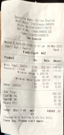 I had a very disappointing experience at this restaurant. The prices are highly overpriced for what you get. For example, they charge ₹259 for a single Mini Thali, and the quantity served is barely enough to satisfy a normal appetite. Even basic items like mineral water are overpriced, with ₹25 for a 1L bottle — the same water you can get for ₹20 elsewhere. We also ordered Rasmalai, which was ₹55 per piece — and again, very small portions. The overall bill came to ₹966 for just 3 thalis, 2 sweets, and water, which is absurd for the quality and quantity offered. Definitely not value for money. I would not recommend this place unless they reconsider their pricing and portion sizes. Poor return for what you pay.