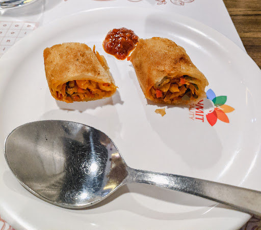 Sanmit restaurant in Gandhi Maidan is a great restaurant with a lovely ambience and music. I was there for dinner with my family. Considering the previous reviews of different customers this restaurant surpassed my expectations almost in everything. One thing that needs to be keep in mind is their service. Their service is a bit slow but the food was good enough. We had spring roll (that's my fav) though, dahi ke kabab in starter. In main course we had naan/onion kulcha, paneer Angara, manchurian, mix veg.