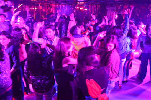 Neon-lit bar and lounge offering hip hop music, a Chinese and Indian menu and cocktails.