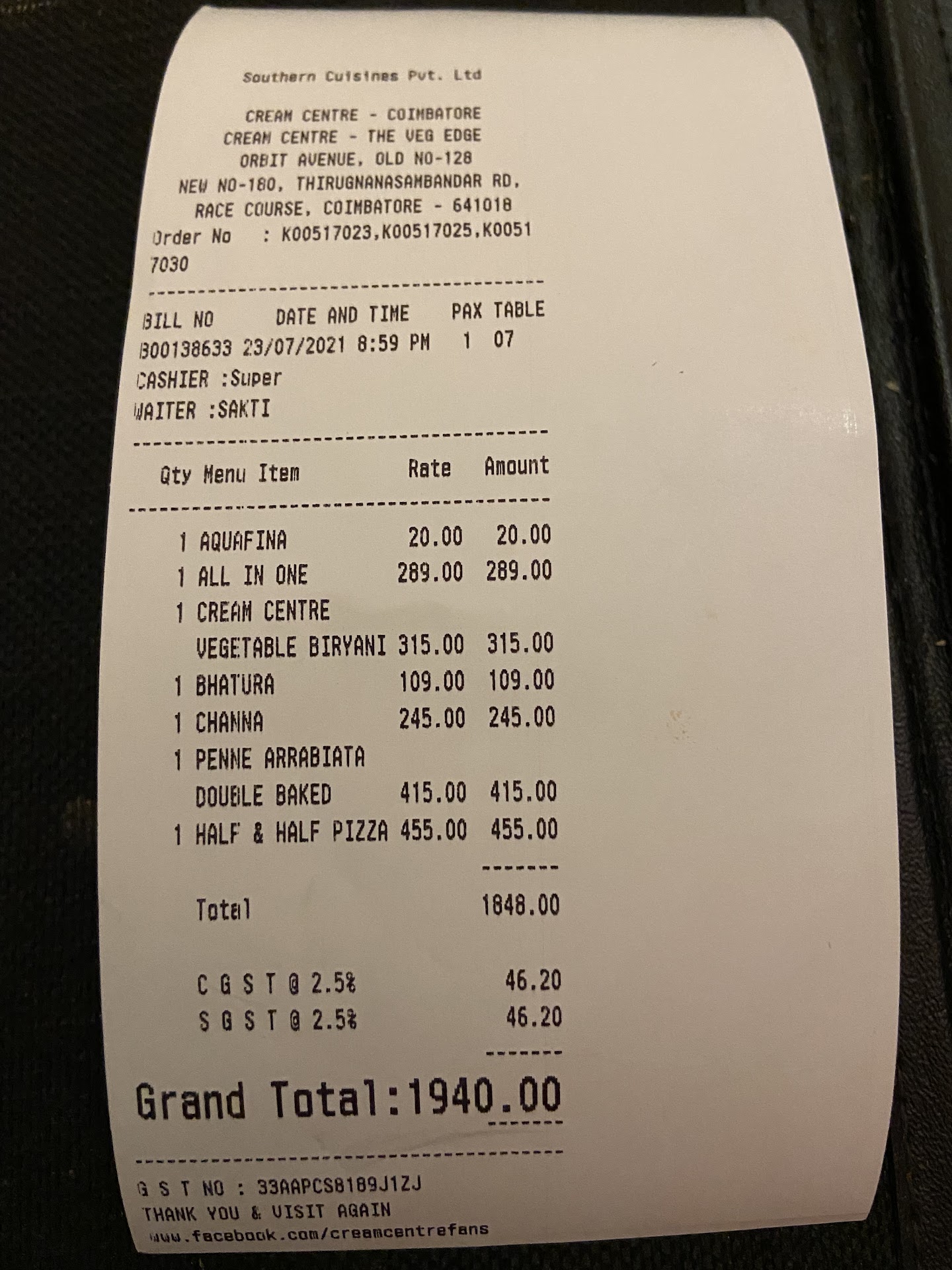 I am sorry to say their service regarding the main course now become horrible... especially those who knows about cream centre it's a Mumbai based company got famous by serving mumbaikar dishes, but now they are serving all dishes in chetinad style...I ordered paneer makhani and one main course dish with mushroom and vegetables both are horrible. Paneer makhani was very much sweet..it was like paneer kept in tomato curry which mix with sugar syrup. Mushroom mix vegetable was like chettinad curry.. That means cream center people using local staff to cook Mumbaikar dishes. Advice to cream center: please keep specific chef for specific dishes. Trained chef much much needed. I think chef never eat paneer makhani in life...