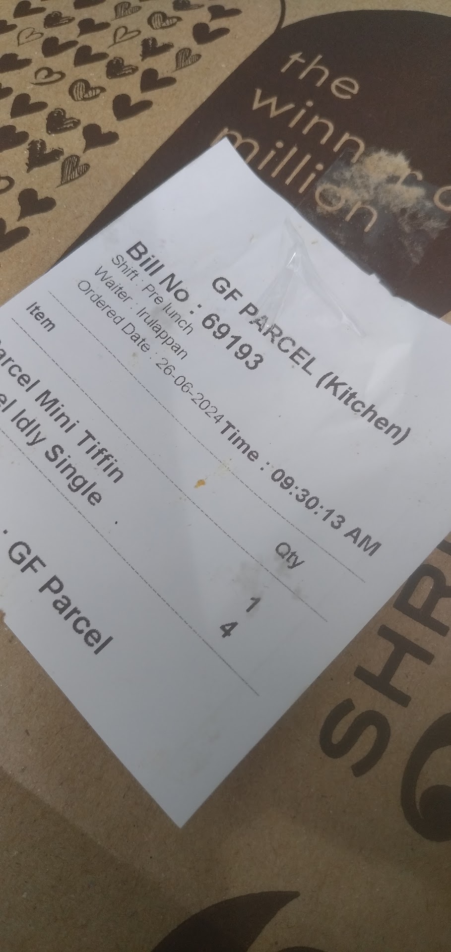 Read moreWe have bought breakfast parcel. They delivered in brown cover. We asked for a handled cover which will be easy for carrying. The service person asked us to get it from Sweet stall. But the employee works at Sweet stall refused to give a handled bag to carry the food parcel. When we requested they strong said THAT THEY WONT GIVE THE COVER AND THE CUSTOMER TO CARRY AS SUCH. If the customer step in while passing the area to get the food parcel, else travelling in a two wheeler, how they will manage to take that till their home? I surprise that how the management has not thought on it. The customer should either hold the parcel or to drive???