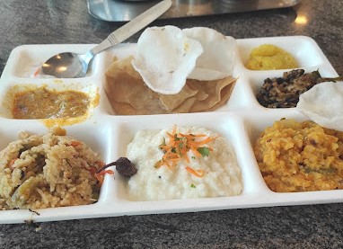 I want to share an incident in the lunch hours where we ordered South Indian Meals. The service crew brought a big leaf, which needs to be appreciated for serving the same. But the problem is the small table for four and they keep a common dish like Salt, Pickle, Vatthal Kuzhambu and buttermilk on that table. It touches all the leaves of everyone sitting on the table, which doesn't seem hygienic. Everyone has to serve themselves with that common dish, which touches the leaf of all. They should avoid keeping a common dish on the table and serve like other menus or they should have a big table for four.