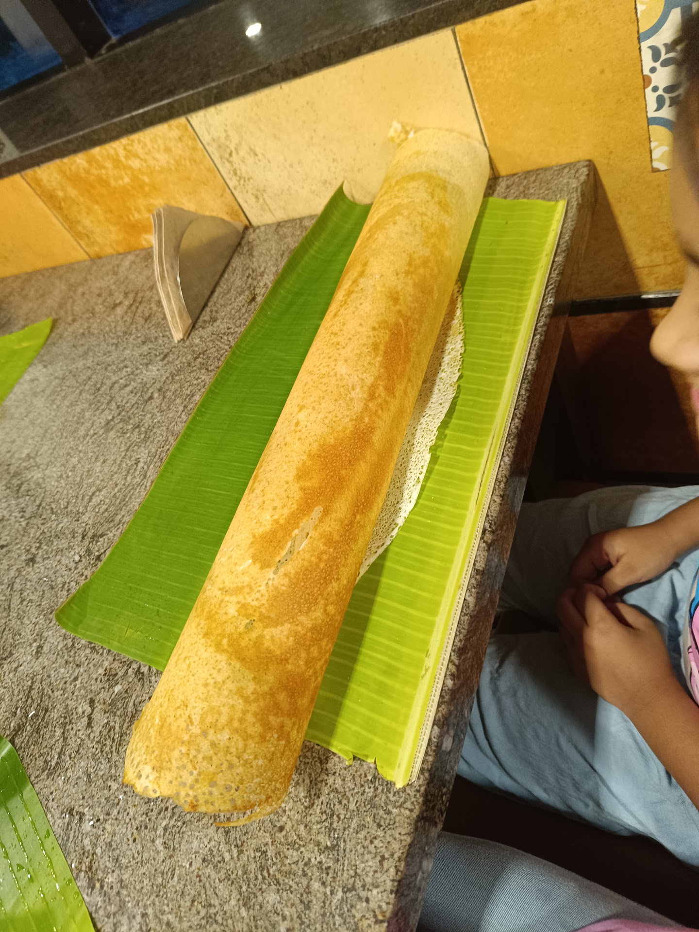 I want to share an incident in the lunch hours where we ordered South Indian Meals. The service crew brought a big leaf, which needs to be appreciated for serving the same. But the problem is the small table for four and they keep a common dish like Salt, Pickle, Vatthal Kuzhambu and buttermilk on that table. It touches all the leaves of everyone sitting on the table, which doesn't seem hygienic. Everyone has to serve themselves with that common dish, which touches the leaf of all. They should avoid keeping a common dish on the table and serve like other menus or they should have a big table for four.