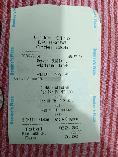 Read morePizza is love, whenever one have cravings to eat it, please go to the place and have a bit of pizza. It's calming . You feel so relaxed when you a have bit of pizza especially when you are feeling so hungry. Ordering pizza and eating it at home or outside, is good. But when you go the store and sit there and have a bit , that's amazing. So go the place and order a pizza you love and eat it because Domino's serve delicious pizza .