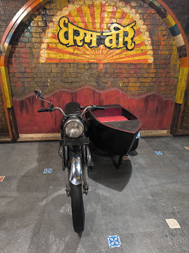 The ambience is what truly sets Garam Dharam apart. The entire place is a fantastic tribute to the legendary Dharmendra, with his famous dialogues creatively displayed on the walls. The decor captures the essence of classic Bollywood, and the iconic bike from Sholay is a fun touch. The atmosphere is further enhanced by mellow old Bollywood songs playing in the background, adding a perfect nostalgic vibe.