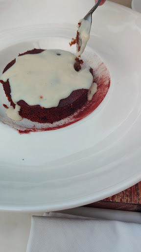 We ordered their Mediterranean specialty, Turkish chicken and coriander pilaf, which had white and chickpeas cooked in chicken broth. Before it arrived, they surprised us with a small serving of cheese balls, which were crispy on the outside and soft on the inside, setting up the dinner perfectly.The main dish was a delightful new experience with an authentic Turkish taste. The rice was soft, and the chicken was grilled in a lemon coriander paste, offering a broth-like flavor different from Indian dishes. The chickpeas in the rice were crispy, not soft like chole, which was something new! The garlic bread and hummus dip on the side were the cherry on top.We ended our meal with a dessert, Mango Baba Rum, which had a base flavor of rum and mango with strong spice notes – a true mind-blowing experience.