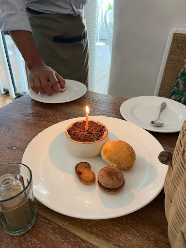 This cafe has been on my list for a really long time now and I thought what's a better occasion than my birthday. So we went there on the 4th of July to have a birthday lunch (extra blessings for you if you count the number of times I write birthdays). Anyways, it's a pretty,not so little cafe tucked in sec 26. It has that white and blue decor which you can find at a lot of places nowadays, but definitely aesthetic. It's a good place to get lots of pictures clicked. They have plants and lamps and pretty chairs for your background. Coming to the important part, birthday lunch- *Trio of Traditional Sourdough Crostini (475rs) Sounds fancy,right? It was. It was definitely fancy. If you are somebody who has never had this fancy dish, let me tell you what it was. There were three bread pieces with different toppings. One had spring pea and asparagus (mind you, peas, just boiled peas) , another one had cheese, olive and chime and the third one had tamotoes, basil and chilli bruschetta. For somebody like me who didn't know what it is and definitely doesn't have such refined taste buds this was a questionable dish. None of us were fans of this dish and won't even recommend it. *Peppery Alfredo (695+165 for vegetables) We ordered linguini tossed in creamy parmesan Alfredo sauce. This tasted good but as my weird palate friend said " it was nothing special". We have had better pasta I guess. But on its own it was fine only. You might enjoy it. *Asian Bowl (825rs) This was something new for us. We decided not to go for pizzas or burgers but try something new. So we ordered this bowl. It had jasmine rice with all the fancy ingredients like avocado, mushroom, tofu, pickled cucumber, edamame, gochujang etc etc.. we have mixed reviews about this. One of us didn't like it at all, she felt that none of these ingredients went with each other and the rest of us felt that it was fine. I mean all the ingredients on their own tasted really good, I absolutely loved the mushroom and the sauce and the tofu. It was a new dish so we might not be aware of the authentic taste but we found it to be fine. Might not try it again though. *Tiramisu The best part of the lunch was this tiramisu for me. They serve their tiramisu with a bunch of other things like coffee macaroons, coffee ice cream, bombolini, palmier etc. It was light and really tasty. All of us loved it and the other tiny desserts that they served with it. They were also kind enough to put candles on it for me to blow as it was my BIRTHDAY. *Vietnamese coffee All three of us had Vietnamese coffee and it was also okayish. I have had better coffee so not a fan. *The service was amazing. Our server ( I don't remember the name now, Anit may be) was really attentive. He was kind enough to serve us our food and was really attentive. *Another catch is the beautiful chef. My friend thinks that there is nothing better than a chef who can speak Italian. So if you are into that ,you have another reason to go. *Do I recommend it? Yes, sure. Go, try fancy food and see for yourself if you want to go there again..it's definitely pretty and it definitely looks prettier in the evening. It is definitely expensive though. We...