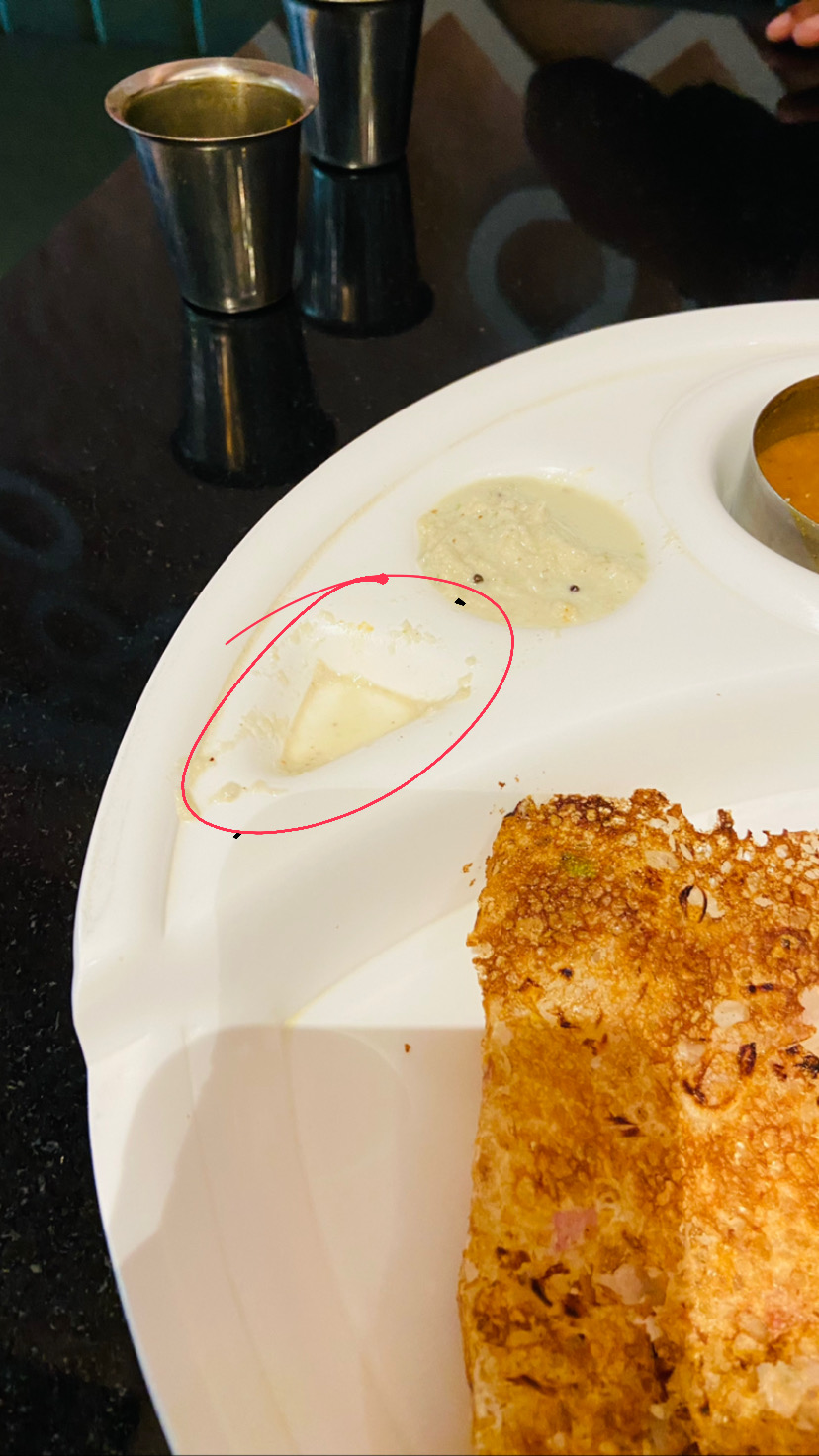 Rava onion dosa : 2/5 (bit burnt and no taste. Neither of onion nor rava and even if I try to imagine the taste of rava dosa, well that’s something hard to imagine. And since I love rava dosa , being biased and rating 2 because this was least worst of the 3 items we ordered)