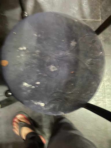 The table cloth was very dirt, it had stains all over it. The seat of chair was covered with curd.
