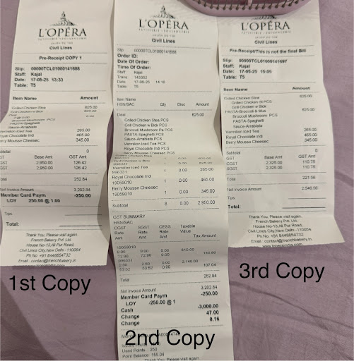 Please beware of billing fraud at La Opera (Civil Lines branch). The initial “invoice” provided was clearly marked “Pre-Receipt COPY”, which is not a valid invoice. After reaching home, I reviewed the charges and noticed discrepancies — the actual total should have been ₹2546.56, but they had charged ₹3202.84. When I raised the issue, they manipulated the bill by adding an item we never ordered to justify the inflated amount. Only after a lengthy discussion and verbal confrontation did they agree to refund the entire amount.