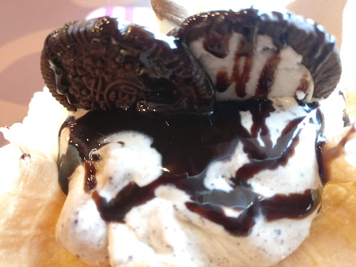 Read moreCan be easily spotted from the road and easy access on the first floor, don't think they have a ramp. Served on a wafer that's on a paper cup. The wafer doesn't have the cups depth. So when you look, you fell like you are getting a lot of ice cream but sadly no. Can't say it's ice cream, its more creamy but taste is fine. They don't have table service, they didn't even call me once the order was ready and it took some time to get the order. Place is little old and the cleanliness is not upto the mark for the name. Nothing special about the Ambience, the interior design is old. The place wasn't crowded even on a Sunday Evening. Service was ok. Lots of delivery guys came in to pick up. No parking, but you can park out on the road. Price is fine. They don't give you water even if you ask them. They will say they only have bottled water. Its sad that now a days that you can't even get water. There were no music and don't feel like fun to be there, made me feel that I should have ordered online. They do have a good place in...