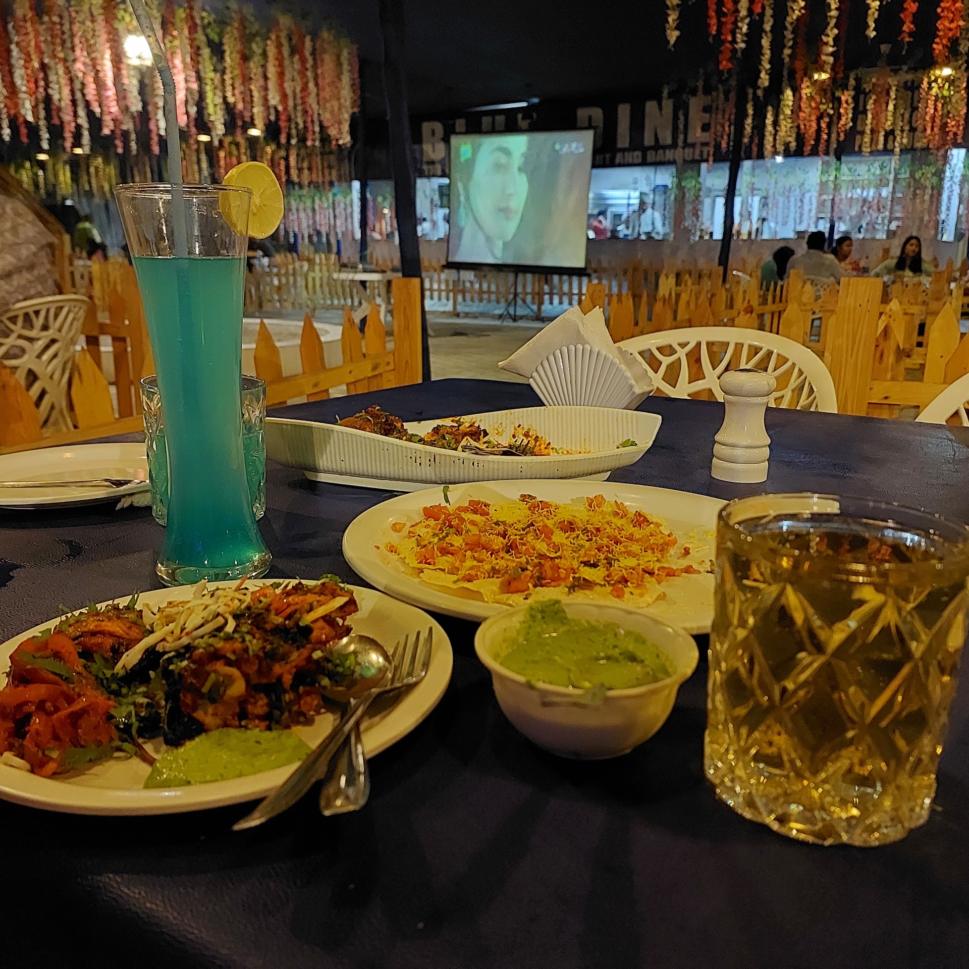 One of the most distinctive aspects of Hotel Blue Dine is its tent-style dining setup. Unlike conventional restaurants, guests can enjoy their meals in semi-private tents, each covered with curtains and assigned a unique name instead of a number. This adds a cozy, personal touch to the dining experience, making it perfect for families and groups.🍀🌴🍀