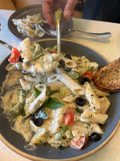 As you step into the cafe, you are immediately enveloped by the rich aroma of freshly brewed coffee, a scent that lingers in the air and beckons you to take a seat. The ambience is warm and inviting, a perfect blend of modern decor with a cozy touch. One of the highlights of the menu is their specialty bourbon coffee. The first sip offers a unique experience, the bitterness of the bourbon perfectly balanced with the robust flavor of the coffee, creating a drink that is both strong and smooth. Equally delightful is their iced cappuccino, which is refreshing and creamy, making it an ideal choice for a hot day.A standout feature of this cafe is the beautiful pizza oven prominently displayed in the open kitchen. This thoughtful design allows diners to watch as their fresh pizzas are skillfully prepared and cooked to perfection. The sight and aroma of pizzas baking in the oven add to the overall sensory experience of dining here.The staff at the cafe are exceptionally courteous, attentive to the needs of their customers. They even went as far as to lower the volume of the music, enabling our group to converse easily—a considerate touch often overlooked by other establishments, especially on busy weekends.We indulged in several of their house specials, and each dish surpassed our expectations. The chicken stew was hearty and flavorful, the onion rings with cheese were crispy and decadent, and the peri peri chicken pizza had the perfect level of spice, complemented by a well-made sauce. The accompaniments and salads served alongside were fresh and thoughtfully prepared, enhancing the overall dining experience.Our server was incredibly knowledgeable and friendly, guiding us through the menu with patience and enthusiasm, ensuring all our doubts and expectations were addressed. The service was impeccable, with plates being promptly changed between courses, a level of attentiveness that justified the service charge.What struck us most was the surprisingly low number of patrons in the restaurant, which we attributed to its relatively new presence in the area. Despite this, the quality of food, service, and ambience suggests that it won’t be long before this cafe becomes a popular spot.Overall, our visit was outstanding, earning a perfect 10 out of 10. This cafe is truly worth a visit, promising a memorable experience from the moment you walk in until...