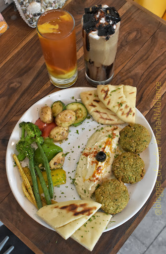 if you are in love with Pesto and a Vegetarian you can opt for Pesto Cottage cheese platter - 2 Large chunks of Cheese done in Pesto served with Pita and hummus is an ultimate thing for #Paneer lovers