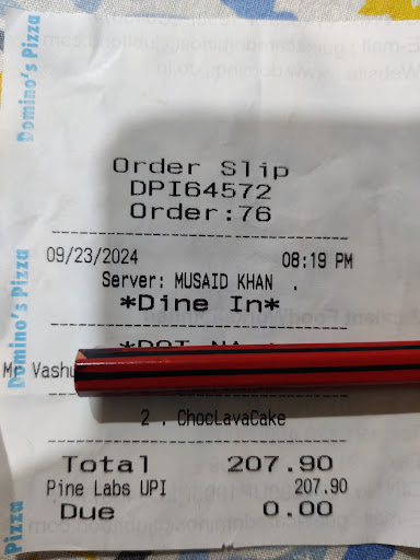 We visited to order the Chicken Feast menu, but unfortunately, the garlic chicken was out of stock, and the counter was not accepting orders. After waiting for 10 minutes hoping someone from the staff would assist us, I eventually took the initiative to approach a staff member. I was informed that we needed to place our order online. After placing the order, once it was ready, they simply left it at the counter without notifying us. My wife checked the status, and the staff member, Mushaid Khan, rudely told her, "Wo pada uthalo" (just pick up the order). His behavior was unprofessional, and his body language was discourteous. I strongly urge Domino's to take action against him, as we have seen similar negative comments about him. If this continues, you may lose customers. His name is...