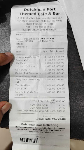 Read moreDutchman Port, located in Spectrum Mall, Noida, is a unique dining and entertainment destination that offers a blend of vibrant ambiance and diverse culinary experiences. The restaurant draws inspiration from a nautical theme, creating a cozy yet lively atmosphere ideal for family outings, casual dining, or even a night out with friends.