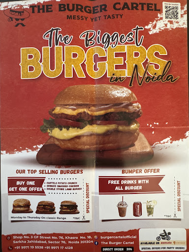 The Burger Cartel is a must-visit if you love Mexican flavors with a twist! 🍔🌮 The ambiance is really nice with good seating space and eye-catching wall art that sets the theme perfectly. The host is warm and welcoming, which makes the whole dining experience even better. The burgers here are absolutely massive, juicy, and full of flavor – definitely a meal in itself. Apart from their Mexican gourmet burgers and classics, they also serve tacos, rice bowls, burritos, quesadillas, La Línea fajitas, and many more delicious Mexican snacks, so there’s something for everyone.