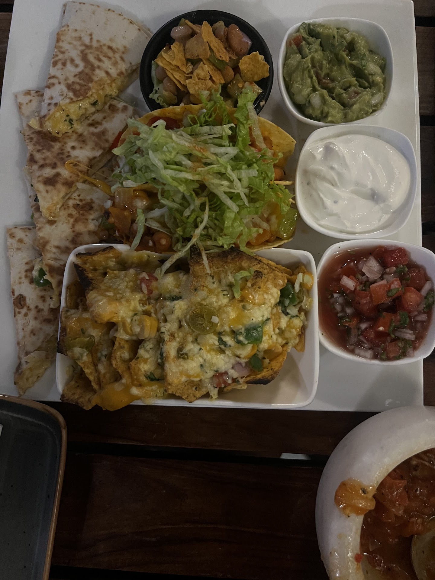It was a Saturday evening and unfortunately we chose to visit Theoโs. Has a terrible experience ! One the place was too crowded, it felt like we have entered a fish market. The segregation between bakery display items and restaurant is not well planned. There was too much of noise. Definitely one cannot have a relaxed peaceful dine out. Second, waiting time to serve the order was 25-30 mins and there was waiting time of 10-15 before also to get a table. So better munch and go as you will be with your lungs out by the time food arrives Third, we order Mexican platter with Jamaican shake. The platter tasted all of cheese and no other ingredients. The beans and corn salad portion was too less, rice served were hardly 1 tablespoon, hard tacos were half cooked and too hard to chew, dips served were again very less in portion. The platter wasnโt worth 950/- plus taxes.