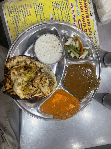 Read moreIf you are around CP and near New Delhi Railway station just visit Amritsari Chur Chur Naan serving since 1945. There are other outlets next to this with the same pricing or flavours.. but I guess I found this is quite popular amongst the localities and first time visitors. Their Thali menu with two mixes of Chur Chur Naan starts with 140 with a combination of dal makhani, chole,raita and salad. If you want to try Shahi Paneer you can pay a little more. They have Aloo, Gobhi,Onion,Paneer,mix Naan and Kulhad Lassi. They have got Chole Bhature, Rajma Chawal as well if you want to try a little more. Flavours are too good and one can sit and enjoy the food. Clean steel plates and Tissue papers available. For any extra sabzi u need to pay a very little amount of 30 rupees. Else for two naans the veggies served in the plate is sufficient. There is no parking slot on the road as this is a market area and on the road won't find any parking for cars. Keep safe for your personal belongings being a crowded area. Recommended to try once and taste the...