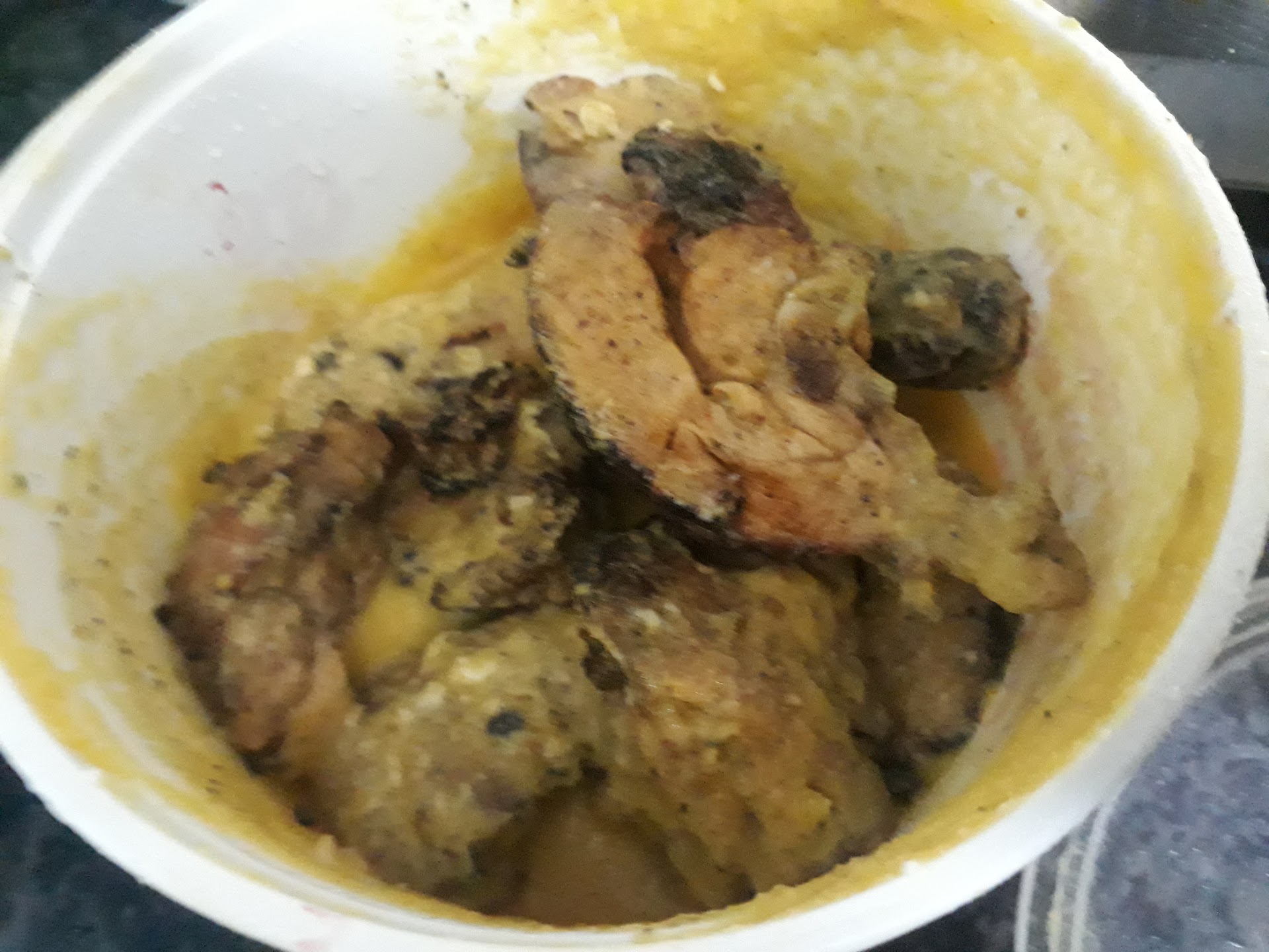 And then comes the interesting part. While the chicken is being grilled, some men are heating huge 500-gram slabs of butter in pans. Once the butter melts, it’s poured over the chicken in the bowl, and then served to the salivating customer. A full plate of chicken is for Rs.400 and a half plate for Rs.200. Aslam grills fish in a similar manner.