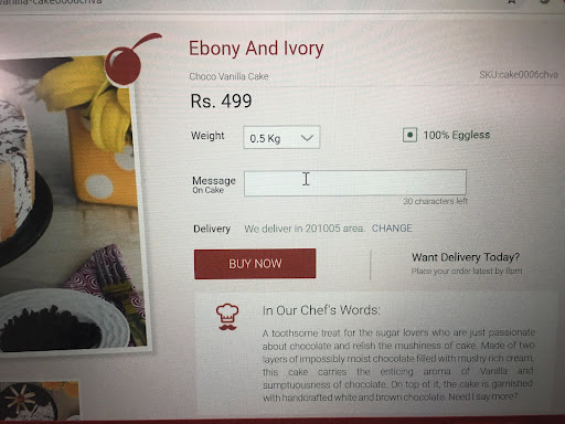 Only two thing i didn't liked, though i received my cake in shape. They deliver on bike. I suggest please atlest deliver on scooty. Beacause risk level is comparatively less on scooty. Rider can keep cake on the floor or you can install insulated box on the back of scooty or even you can install on bike too. So even if vehicle get bumps, cake remains at its place. Because if anything happen, not only cake will get waste, occasion will get affected and ultimately your personal reputation. Secondly, teach you rider not to share any wording good or bad about their client in front of other client. This shows unprofessionalism.
