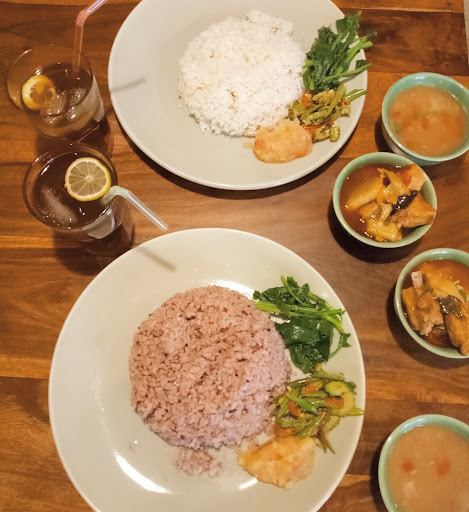 We opted for the pork thali which comes with rice, dal, stir-fried vegetables, chutney, boiled leafy vegetables and the pork curry made with bamboo shoot. There are two types of rice one can choose from: the regular white rice and red rice. The dal was a little bland for my taste but the other things on the plate totally made up for it. The stir-fried vegetables were yum and the chutney was AMAZING. It was super fiery, just the way I like it. If you're not a big fan of raja mircha, please steer clear of it. The pork curry was smashing as well. The thali also comes with an ice tea which was truly a savior while we were gulping down all that fiery goodness. We also ordered a side of their dry fish chutney which was the star of our meal!! Again, super hot. I liked it so much, I packed it up and got it home so that I can have it with my dinner.