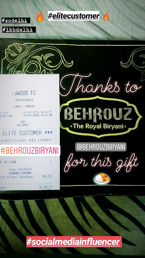 Recently ordered from Behrouz Biryani. It is a delivery only outlet that serves only Biryani of various kind.