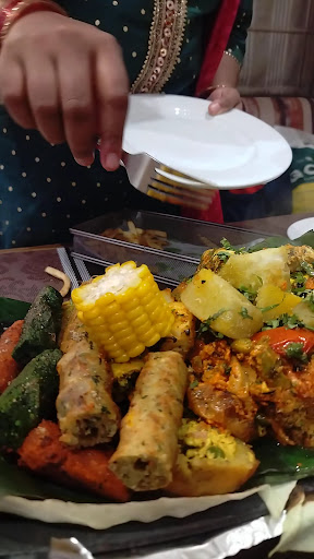 The Veg Sizzler Platter left a good impression, though slightly salty. However, the thin crust pizza was disappointingly thick, resembling cardboard. The garlic bread looked tempting and the variation in table setups made for an interesting quirk. While service was a bit sluggish, akin to a turtle's pace, the small portion sizes of the food were noticeable.