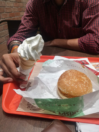 I went to this outlet of Burger King "kirti Nagar" and asked one of the staff members to order, that : "Do you have something without onion and garlic expect fries" She said yes I asked what? She told me about 2 burgers I was like "ARE YOU SURE?" She said yes because we serve these burgers during Navratri's as well I asked again "ARE YOU SURE?" She said 100% ma'am I was like okay These 2 burgers, 1 medium fries and 2 cold coffees She took the order and me and my boyfriend had that there only... He don't consume onion and garlic because of his "Petition to God"