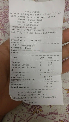 They are doing fraud by charging service charge at 5% on the total amount. Their bill is so vague, one day if a person from IRS comes to this place, will definitely give them a bash. First of all, the prices of the food items mentioned on the bill & menu are inclusive of GST of 18% (now 12% 6oct,17). What they are doing is, charging the service charge on this amount. Now first of all, service charge is not mandatory to pay. Second, if it is charged, it should be on the gross value of the food item. For eg- A frappe here costs Rs.165. This price is inclusive of 18% GST. So its gross amount is 139. Now instead of charging the service charge on 139, they are charging it on 165.