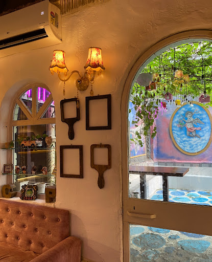 Quirky and trendy decor with a pastel pink theme Cozy and intimate seating area Beautifully designed outdoor seating with a lovely view of the Hauz Khas lake