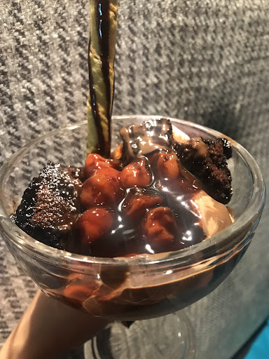 In drinks, we ordered a molten chocolate shake, a Nutella & Davidoff cold-coffee & a chia seeds and mango smoothie. Dessert was a molten chocolate mug cake.