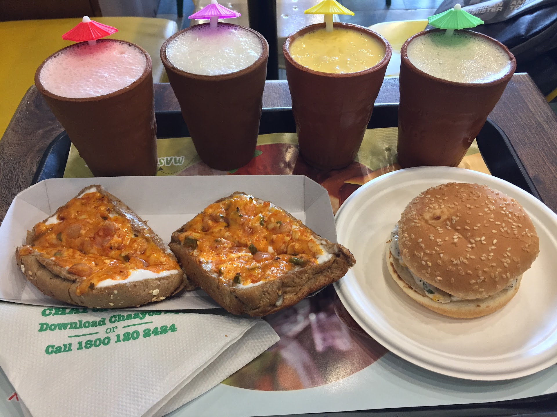 Read moreChaayos is the perfect place to be in the summers. Out with friends or your girlfriend, find yourself a seat at any of the 36 outlets of Chaayos and sip iced tea and lemonade along with the delicious food served. So, I visited this branch of Chaayos on a Sunday evening and it was full with people. Maybe that's how popular it has become. I ordered Garden Fresh Sandwich, Vada Pao, Thepla Tacos Paneer and Kulhad Pav Bhaji for the meals and Modinagar Shikanji, Mint Lemonade and Lemon Ice Tea for drinks. My experience was just amazing. Truly amazing. I just loved the lemonade and the iced tea. They were so refreshing that you forget for a moment that it's so hot outside. My favourite among the three has to be the Modinagar Shikanji as it had the best masala for the Shikanji. A must order. I would strongly recommend you order Garden Fresh Sandwich and Kulhad Pav Bhaji. Sandwich had the best mixture of Mayonnaise and Vegetables and tasted delicious. Pav bhaji at Chaayos is one of the best I had. Bhaji is served in Kulhad. You'll love the interiors of the place. It has been beautifully done. Staff is extremely courteous and polite. They'll recommend you what to order depending on your tastes and preferences. Beat the summer at Chaayos. Visit now. For any offers or queries, contact management. Happy...