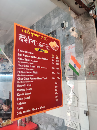 Read moreChole bhature is highly recommended. The price of one full plate chole bhature is only ₹80 in which u get unlimited chole, 2 aloo stuffed bhature, lots of onions, gajar ka achaar and green chutney. If u want to get more bhatura's then it costs ₹20 per extra bhature. They use chole to make the chole they don't use kaale channe for chole. Chole bhature and pepsi(glass bottle ₹20 ) is the best combo. Whenever I go there with my friends then I order two bottles of pepsi and one plate of chole bhature for myself. The chole bhature tastes very good. The real darshan chole bhature is the one that is beside amritsari kulche wala. The one that is on the other side is not at all good the prices and menu is the same but the taste is not good and u have to sit outside under a fan whereas the one beside amritsari kulcha wala has good taste and the u can sit in a room with ac. On zomato and swiggy this chole bhature shop is named as "Shree darshan chole bhature". The one on the other side of the road is named as "darshan chole bhature" U must try their...