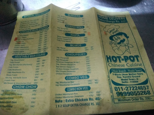 Read moreBest place in Model Town 2 market (near Park) for delicious , large portions of desi chinese snacks. A full plate of noodles can serve upto 4 guys.Av cost per person for full meal approx 150, if 2-3 persons share. Some reviewers have commented on 'rotten' / 'bassi' chow-mein & momos. I can bet they are competitors, because Hot Pot prepares everything fresh on order, right in front of your eyes. I have eaten their more than 50 times over 7 years, never disappointed. Quantity &...