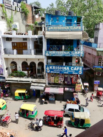 Read moreThis place is well known as "mind your head", becouse of the tiny little stairs with no big space for the head. Allways if you come here, all the guys in each floor tell you "mind your head, sir, mind your head madm." I am sure there is no better table in Delhi then ight in the very corner on the roof top - great wiev to all sites of Paharganj Main bazar, great food - best veg Thali ever and especially chilly paneer, yummy! Also includes wifi (almost always working :) and big smiles of the owner and his employees. In past it was called Satyam, but for glory of Lord Krishna, the name was changed during 2015. I come every year at least once to this...