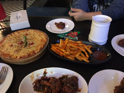 Interior of the place is very warm and relaxing and welcome. The food is average, you have alcoholic drinks as an option here unlike most restaurants in MKT that don't serve alcoholic drinks. I really had a hysteric experience of particular sorts when I decided to go and order something healthy for a change because when I go out to eat, eating healthy is the last thing on my mind so I order a veg Greek Salad with the picture reference on the menu and a margarita chicken pizza. Now, when one is presented with a salad option with a pictoral description alongside on the very menu, One expects somewhat the same thing you see. So, the waiter comes with something green on a pasta bowl and I asked her what this was and she says my Greek salad. I was on the verge of laughing out loud and screaming at the same time because what was presented to me was, I'm being very literal and honest here, lettuce, chunks of lettuce, with green olives thrown around, literal huge chunks of onion cut in the size of half a lemon each that were more than the olives, badly cut 4-5 pieces cucumbers with some peel left on which was extremely bitter in taste cause of the peel, namesake gratings of some type of cheese and mixed, topped off with mayonnaise dressing. And that was literally it, my 'GREEK SALAD', that was my GREEK salad 💀 I didn't know how to react to it and as I'm typing this, I still don't know if the restaurant knows what a Greek salad is or how to make one. And similarly, the pizza was sub par, or very poor, in size and taste and toppings and how it was made. Dry, tasteless, no salt or basic pizza seasoning, no tomato sauce as a base like a pizza should have, 4 or 5 chunks of badly seasoned chicken, some tomato slices that looked as lost as I was on receiving my orders and chewy crusty dough. Yeah, I was and am very disappointed. The Chinese food I ordered later was all fine though. I don't think continental or any food outside Indian or Chinese is their area...